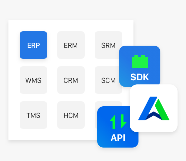提供豐富的API接口無(wú)縫對接企業(yè)既有系統,包含企業(yè)資源計劃(ERP)、企業(yè)客戶(hù)關(guān)系管理(CRM)、供應鏈管理系統(SRM)、運輸系統(TMS)、倉儲管理系統(WMS)等各類(lèi)專(zhuān)有業(yè)務(wù)系統